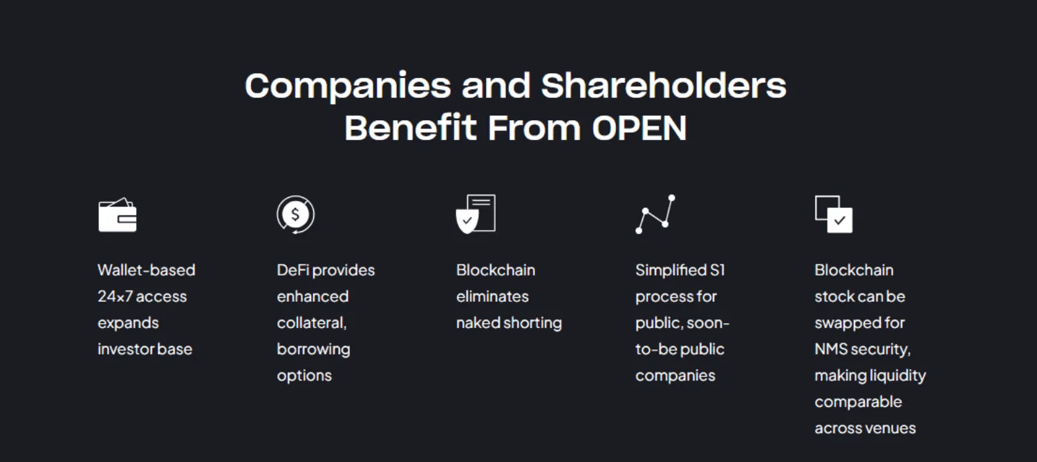 By removing layers like custodial brokers and DTCC processes, OPEN reduces operational costs and friction that are ultimately borne by investors.