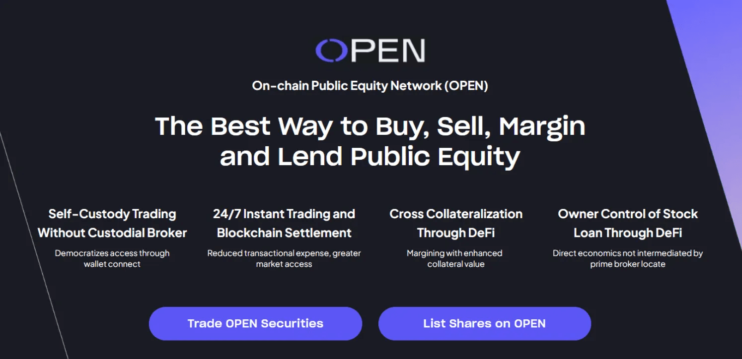 This distinction matters. Most so-called “tokenized equities” remain dependent on legacy systems such as custodial brokers and centralized clearinghouses. OPEN removes those dependencies entirely, allowing equity securities themselves, not representations of them, to operate in a blockchain-native environment.